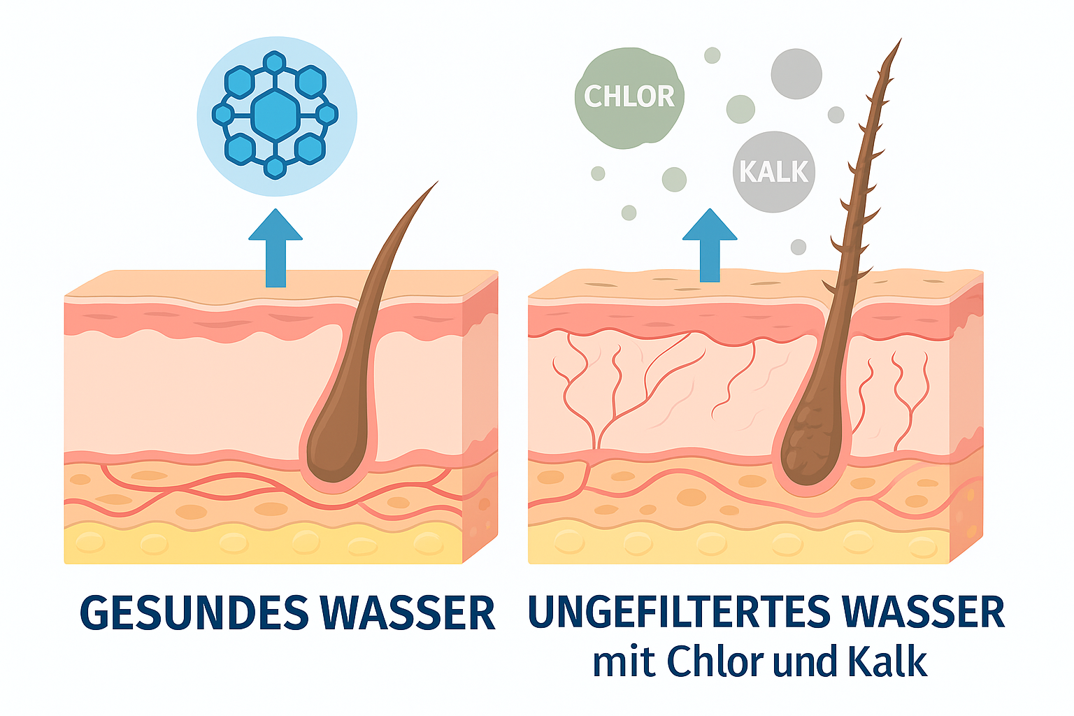 Um den Unterschied zu verstehen, müssen wir zunächst begreifen, wie sich die Wasserqualität auf Haut und Haare auswirkt.