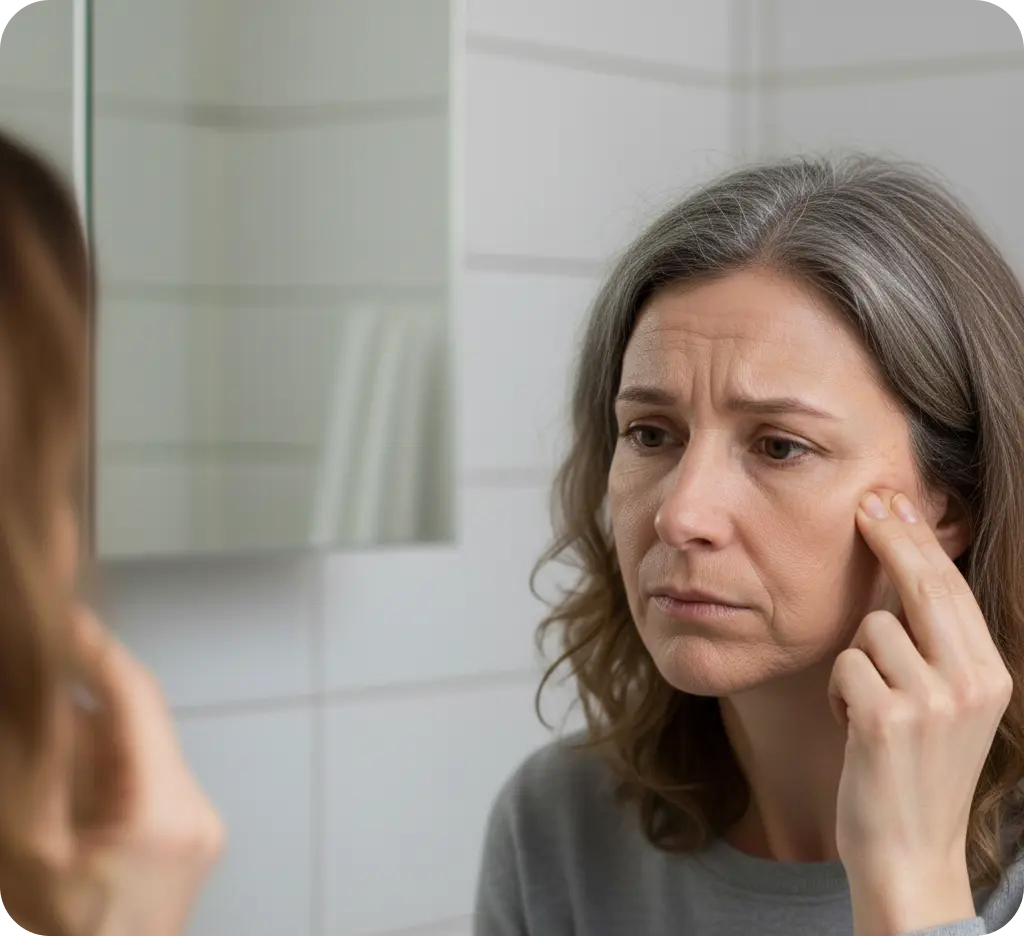 Mit der Zeit führt dies zu einer noch schlimmeren Situation: Kollagenfasern verhärten oder „verkleben“ durch Glykation, die Elastizität lässt weiter nach und die sichtbaren Zeichen der Hautalterung verstärken sich. Und es geht nicht mehr nur um ein paar feine Linien.