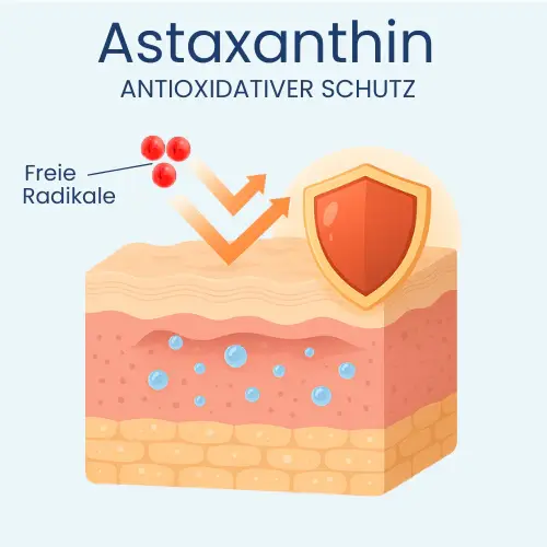 - Astaxanthin – stärkster natürlicher Schutzstoff der Welt (6000x stärker als Vitamin C)